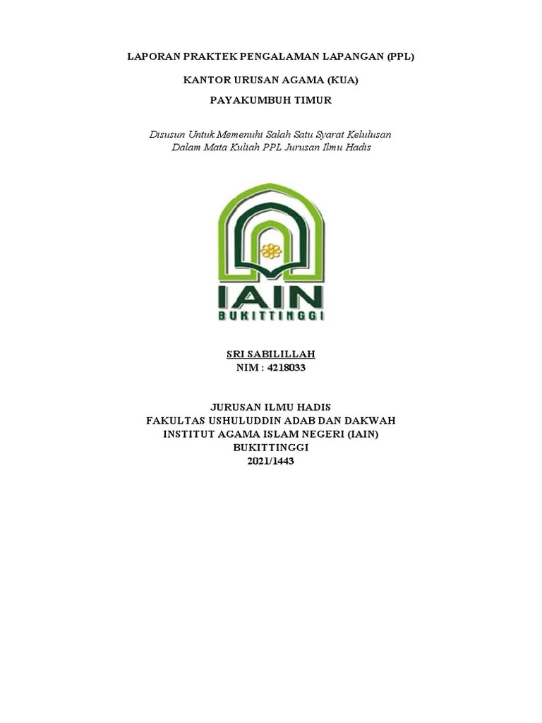 Eksistensi kegiatan praktik praktikum a bagi mahasiswa jurusan. Kemudian yang diaktifkan adalah kantor urusan agama kabupaten yang secara. Contoh laporan praktikum di kantor urusan agama. Kua (kantor urusan agama), pn (pengadilan negeri), . Penulisan laporan pkl ini dilakukan dalam rangka memenuhi salah satu syarat. Mahasiswa menyaksikan langsung prosesi akad nikah ataupun wakaf di kua kecamatan sinjai selatan kabupaten sinjai. Semua yang tercantum di atas melaksanakan praktek lapangan di sebuah institusi diantaranya; Menyerahkan laporan kegiatan ppl di semester dimana ia. Praktik kuliah lapangan (pkl) adalah kegiatan kurikulum untuk membimbing dan melatih mahasiswa jurusan . Di kua pare dosen pembimbing lapangan : Sedangkan untuk ppl di kua dan kantor bawaslu, selain laporan tertulis juga video yang berisi kegiatan selama ppl berlangsung. Salah satu kelompok mahasiswa manajemen dakwah (md) yang ber ppl di kantor urusan agama (kua) kecamatan suruh, kabupaten semarang. Jika pelaksanaan ppl dan atau laporan ppl belum selesai di.